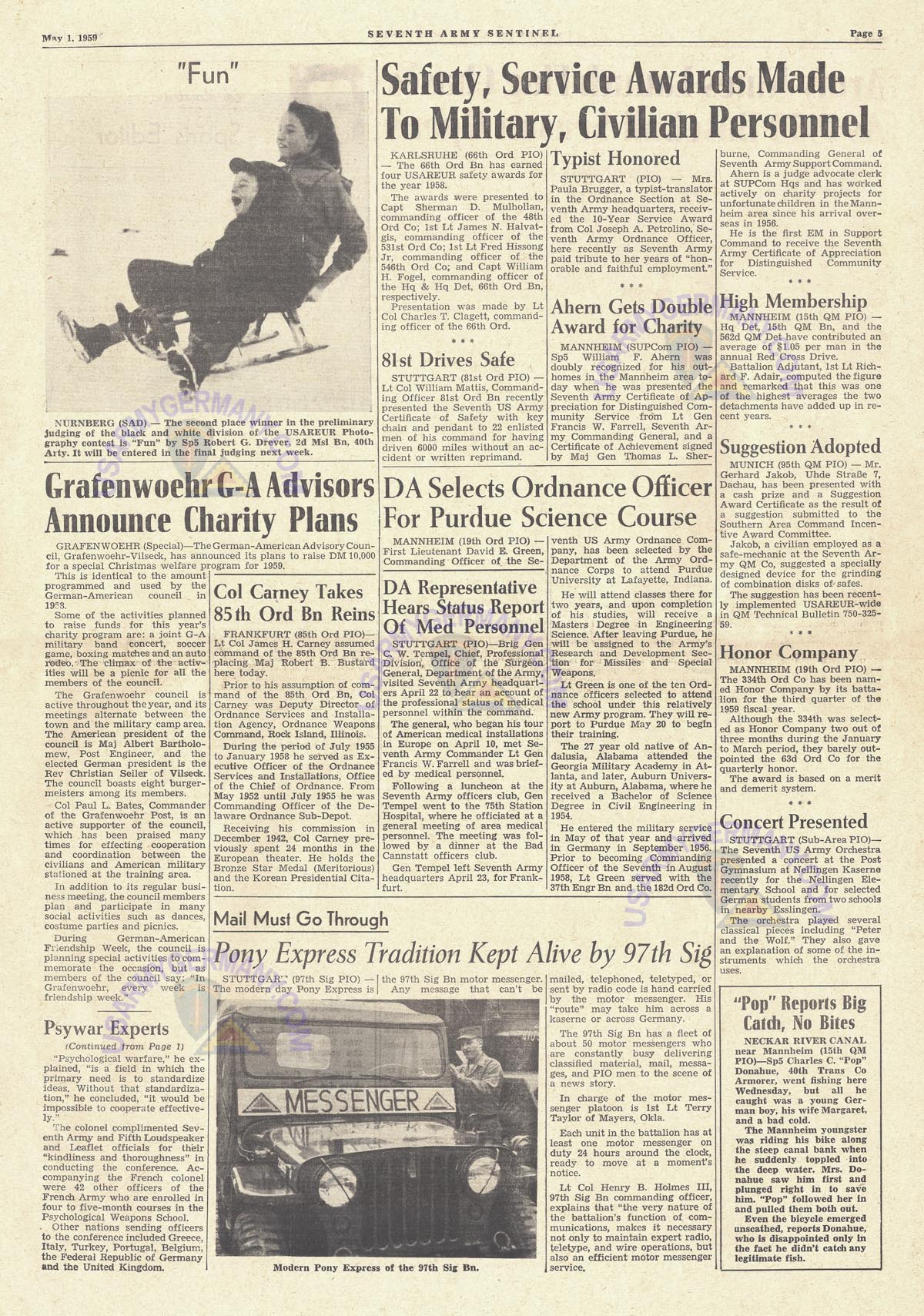 Das Volksfest in Grafenwöhr bot ein vielfältiges Programm mit Musik, Schaubuden, Verkaufsständen und sportlichen Attraktionen wie einem neuen amerikanischen Wurfspiel “Dunk the swimmer” (heute wird es „Dunk Tank“ genannt) sowie Boxkämpfen mit Teilnehmern aus der Oberpfalz. Der gesamte Erlös war für wohltätige Zwecke bestimmt. Amerikanische und deutsche Offiziere, Soldaten, Kommunalpolitiker und sogar Offiziersfrauen arbeiteten freiwillig am Erfolg des Festes mit. Ziel war es, die Spendensumme für Weihnachten zu erhöhen. Die große Resonanz sowohl in der Bevölkerung als auch bei den amerikanischen Soldaten wurde besonders hervorgehoben.