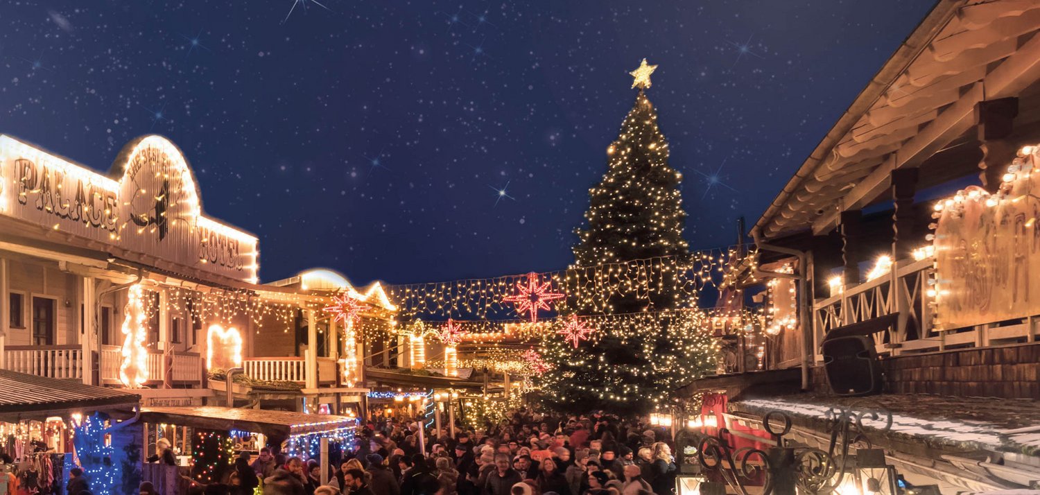 Riesenplüschtiere wie “Frosty, Rudolph and Little Santa”, Plätzchen und Punschstände machen den Bummel durch die bunt beleuchtete Westernstadt zu einem einzigartigen Erlebnis.